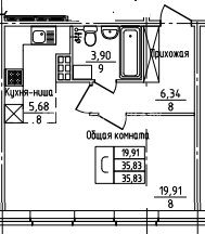 1-комн.Площадь: 35м2