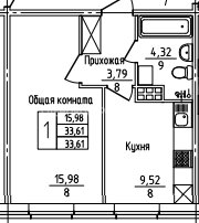 Продажа квартиры: 1-комн., 33 кв.м, 5.38 млн.руб. (id:161537)