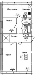 Евро-4-комн.Площадь: 78м2