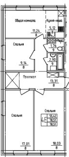 Евро-4-комн.Площадь: 78м2