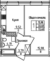 1-комн.Площадь: 33м2