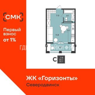 Продажа квартиры: Студия, 35.7 кв.м, 4.46 млн.руб. (id:174181)