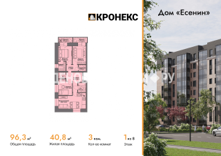 3-комн.Площадь: 96.3м2