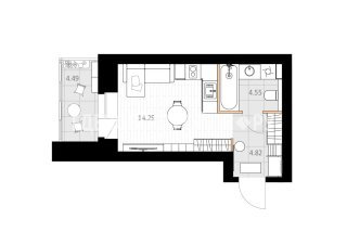 СтудияПлощадь: 25.87м2