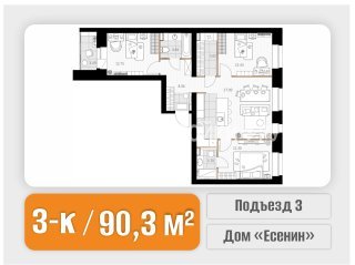 3-комн.Площадь: 90.28м2