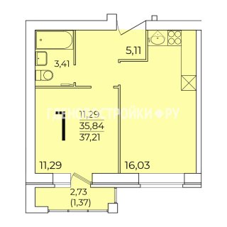 1-комн.Площадь: 37.21м2