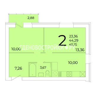 2-комн.Площадь: 45.15м2