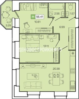 2-комн.Площадь: 56.5м2