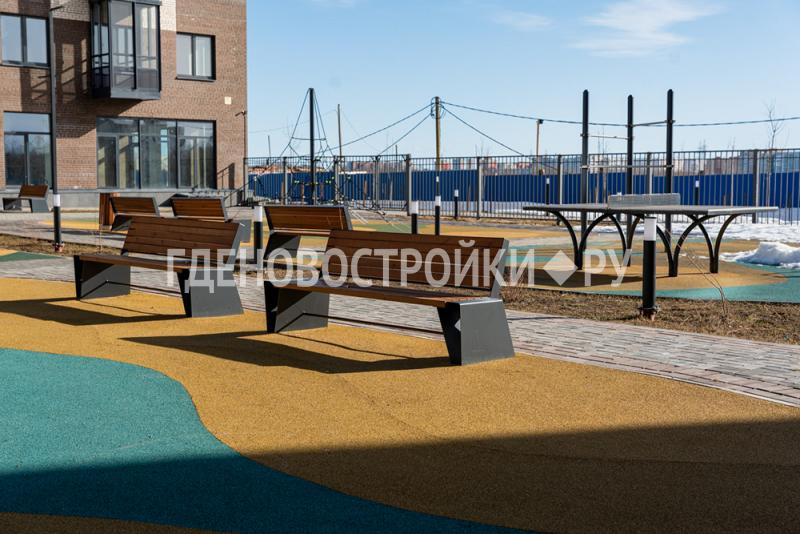 - Закрытая забором территория двора спроектирована по принципу «двор, свободный от машин» и «безбарьерная среда»;