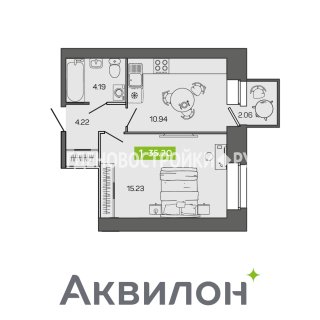 Продажа квартиры: 1-комн., 35.2 кв.м, 4.9 млн.руб. (id:153195)
