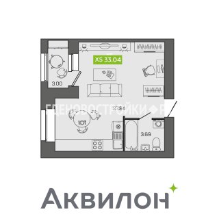 СтудияПлощадь: 33.04м2