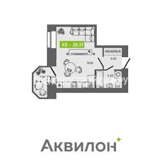 СтудияПлощадь: 26.51м2