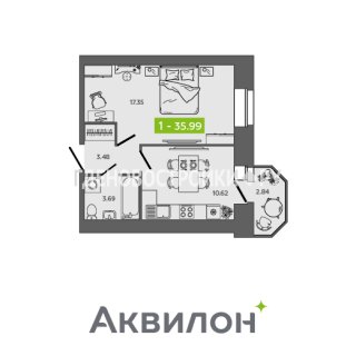 Продажа квартиры: 1-комн., 35.99 кв.м, 5.39 млн.руб. (id:126420)