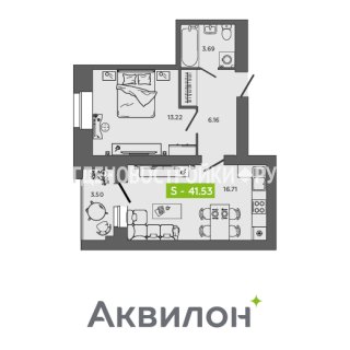 Продажа квартиры: 1-комн., 41.53 кв.м, 6.02 млн.руб. (id:126421)
