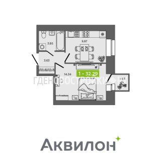 1-комн.Площадь: 32.29м2