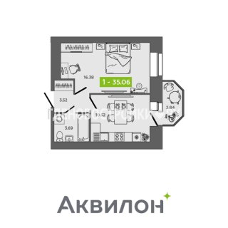 Продажа квартиры: 1-комн., 35.06 кв.м, 4.81 млн.руб. (id:163923)