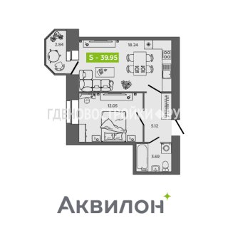 Продажа квартиры: 1-комн., 39.95 кв.м, 5.93 млн.руб. (id:172975)