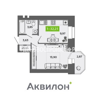 Продажа квартиры: 1-комн., 32.21 кв.м, 5.2 млн.руб. (id:163322)