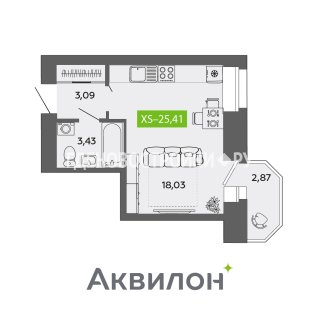 Продажа квартиры: Студия, 25.41 кв.м, 3.85 млн.руб. (id:166601)