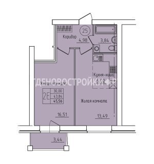 2-комн.Площадь: 45.56м2
