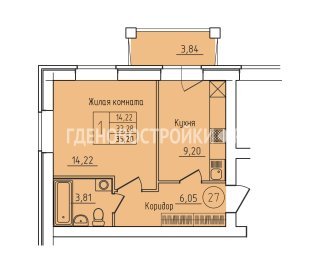 Продажа квартиры: 1-комн., 35.2 кв.м, 4.37 млн.руб. (id:167077)