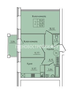 2-комн.Площадь: 55.92м2