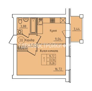Продажа квартиры: 1-комн., 35.28 кв.м, 4.39 млн.руб. (id:167085)