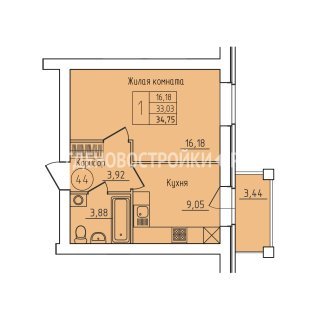 Продажа квартиры: 1-комн., 34.75 кв.м, 4 млн.руб. (id:167091)