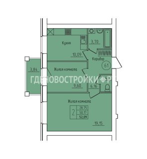 Продажа квартиры: 2-комн., 52.09 кв.м, 6.52 млн.руб. (id:167107)