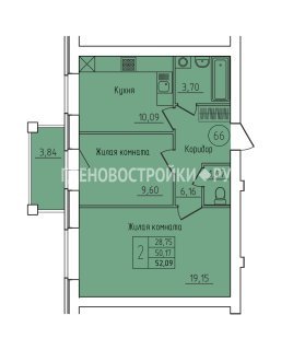 Продажа квартиры: 2-комн., 52.09 кв.м, 6.52 млн.руб. (id:167112)