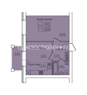 2-комн.Площадь: 45.29м2
