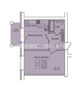 2-комн.Площадь: 44.15м2