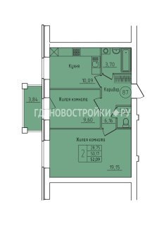 2-комн.Площадь: 52.09м2