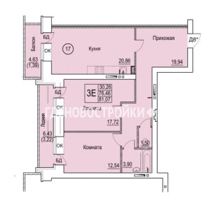 Евро-3-комн.Площадь: 81.07м2