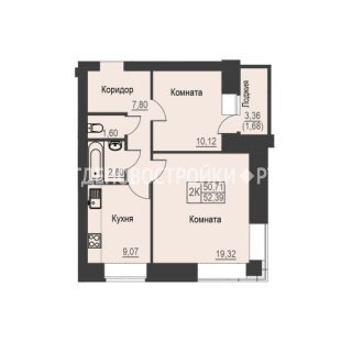 2-комн.Площадь: 52.39м2