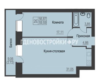 Продажа квартиры: Евро-2-комн., 59.59 кв.м, 7.75 млн.руб. (id:166999)