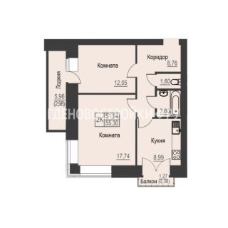2-комн.Площадь: 55.3м2