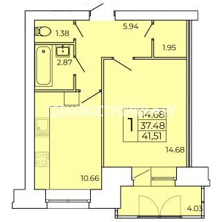 Продажа квартиры: 1-комн., 41.51 кв.м, 5 млн.руб. (id:167536)