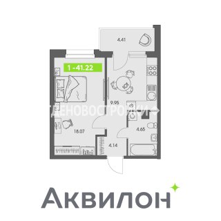 Продажа квартиры: 1-комн., 41.22 кв.м, 6.33 млн.руб. (id:166610)