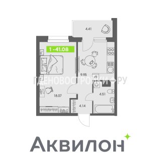 Продажа квартиры: 1-комн., 41.08 кв.м, 6.43 млн.руб. (id:166616)