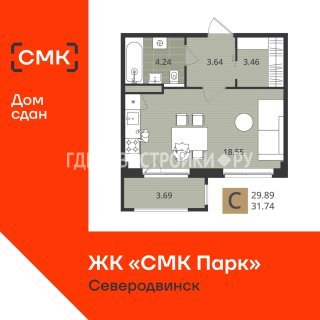 СтудияПлощадь: 29.9м2