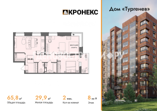 2-комн.Площадь: 65.8м2