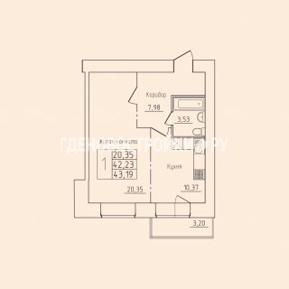 Продажа квартиры: 1-комн., 43.19 кв.м, 4.25 млн.руб. (id:166011)
