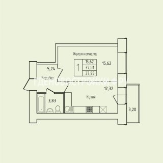 1-комн.Площадь: 37.97м2