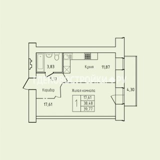 Продажа квартиры: 1-комн., 39.77 кв.м, 3.84 млн.руб. (id:166036)