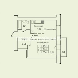 1-комн.Площадь: 44.13м2