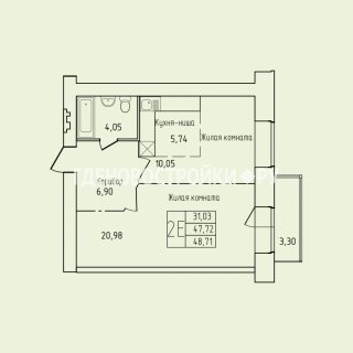 1-комн.Площадь: 48.71м2