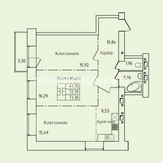 2-комн.Площадь: 73.38м2