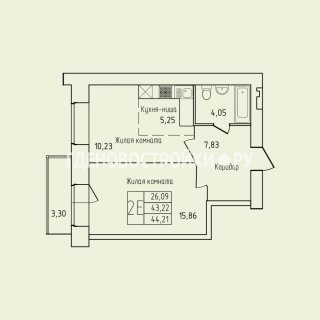 1-комн.Площадь: 44.21м2
