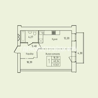 Продажа квартиры: 1-комн., 41.63 кв.м, 4.01 млн.руб. (id:166103)